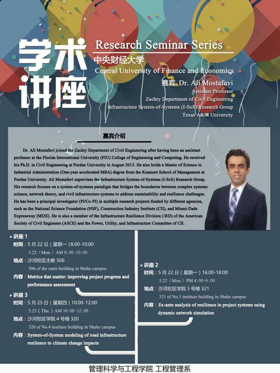 主讲人:Dr. Ali Mostafavi, assistant professor of Zachry Department of Civil Engineering and Infrastructure System-of-System ( I-SoS ) Research Group, Texas A&M University