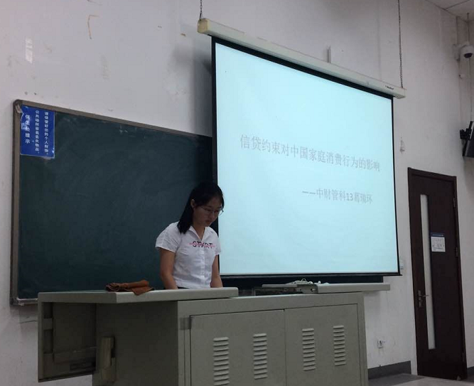 在讲座的基础,肖经建教授就消费者融资约束问题与学生展开了学术交流与研讨。研讨会上,管理科学专业13级本科生葛瑞环以《信贷约束对中国家庭消费行为的影响》为题做了汇报,并从信贷约束的度量、影响因素及其对中国家庭消费行为的影响三个方面展开陈述。肖经建博士热心解答了同学们提出的各种问题,现场气氛十分活跃。研讨会后,肖经建教授还与韩璐副教授及其实验班学员就消费者金融领域进行了进一步的交流和探讨。
