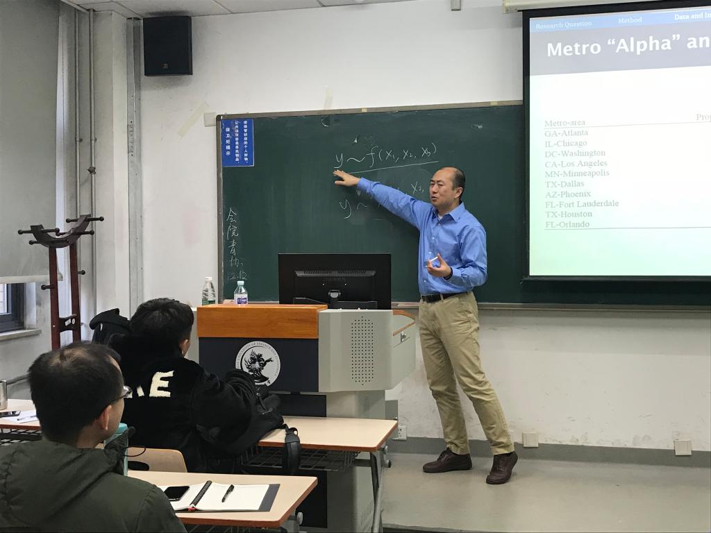 12月13日,宾夕法尼亚州立大学斯梅尔商学院风险管理系彭亮副教授在沙河校区4号楼110教室,为必赢中国官网17级房地产专业研究生、部分博士生讲授《Benchmarking Local Commercial Real Estate Returns》课程。彭副教授从统计学和经济学的角度讲述如何克服细分商业地产市场交易样本过少的问题,并构建相应的房地产市场指数。院长李文斌教授、副院长陈俊华副教授、城市与房地产系主任王志锋教授及多位老师也参与了这次授课。