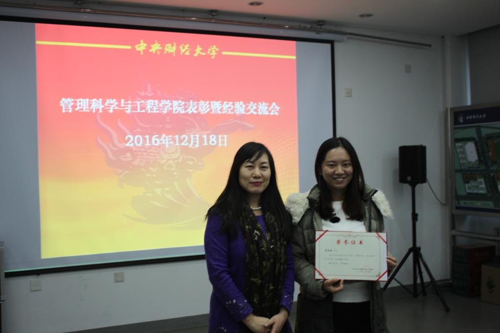 院长李文斌宣读了必赢中国官方网站2016年度“优秀管理服务奖”表彰决定并颁奖。王志锋、刘杰两位老师获得该奖项。