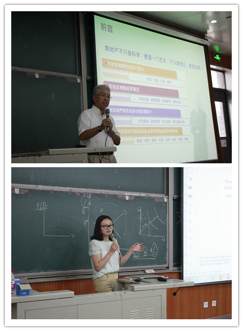 开幕式结束后,学院为营员们精心安排了两场学术讲座。首先,台湾政治大学地政系特聘教授、台湾房地产研究中心主任张金鹗教授为营员们带了一场题为《不动产学术研究之现况与趋势》的专题讲座。张教授分别从房地产研究领域的特质、国外不动产研究现况、台湾不动产研究现况、个人学术研究回顾、未来不动产研究课题等角度做了详细报告。最后,张教授还与大家分享了他最新的研究“大数据分析——不动产自动估价系统公益性平台”,并与学员们进行了互动,开拓了营员们的视野。学院青年教师骨干、曾在国际顶级学术期刊Academy of Management Journal发表论文的投资系教师曲红燕博士随后为大家准备了第二场学术报告《科研之路的选择与范式》。曲老师从如何选择研究方向、选择学术科研的条件与收益、如何判断是否喜欢学术科研、如何准备自己成为一个学术科研的人才、学术文章发表所需注意的特点等方面分享了自己的看法。最后,曲老师以发表在AMJ杂志上的文章为例,以切身经历讲述了自己选题及研究的过程,全体营员受益匪浅。
