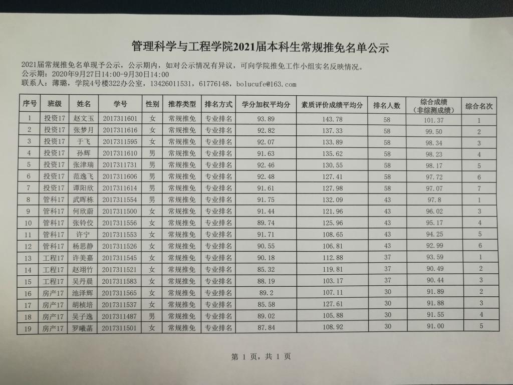 必赢中国官方网站2021届本科生常规推免名单公示