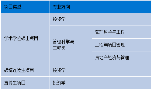 本专业博士生导师研究方向包括:科技投资与融资、系统工程与投资管理、区域投融资与区域经济、房地产投融资理论与政策、绿色投资与可持续发展、投融资理论与政策。硕博连读生、直博生是进入我校攻读投资学博士学位的主要途径,基本期限为五年,授予经济学博士学位。