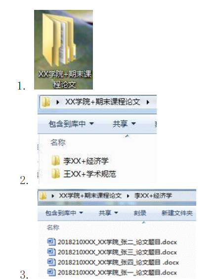 请各位老师按照格式要求于2023年9月7日23:59前将课程论文电子版发送至邮箱ggxy_ygb@163.com。由学院统一报送归档,论文不需提交纸质版。格式要求如下:1.以“学院名称+期末课程论文”命名文件夹;2.每门课程论文以“授课教师姓名+课程名称”命名文件夹;3.每篇论文以“学号_学院_姓名_论文题目”命名。图例: